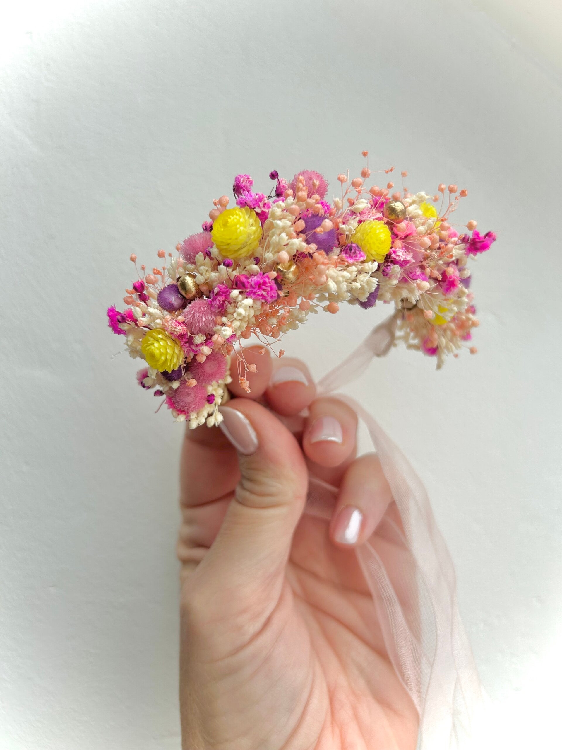 Je crée des accessoires en fleurs séchées pour mariage sur mesure,